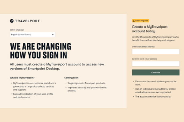 As part of this initiative, all Travelport+ (1G) system users will be required to have an active MyTravelport account to access future versions of Smartpoint Desktop. If you are currently using Smartpoint Desktop v10.1 or later, and do not have a MyTravelport account, you will be requested to create an account when signing on to Smartpoint Desktop.